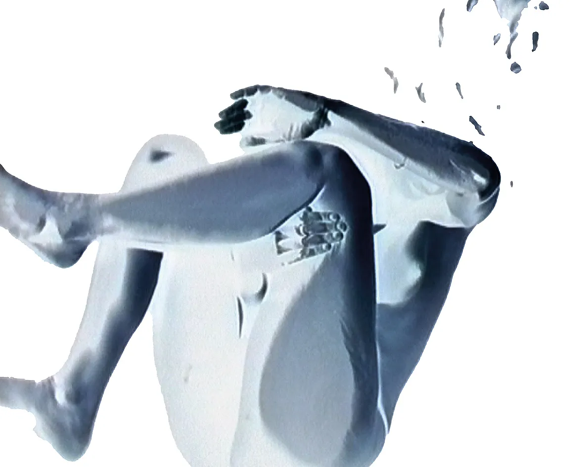 Die blaue Serie zeigt Körperabdrücke auf Glasplatten – analog erzeugt, kühl, verfremdet, entzogen. Die Körper erscheinen nicht als Originale, sondern als Blaupausen, als Spuren, die sich wie in ein System eingeschrieben haben. Was sichtbar wird, ist nicht der Körper selbst, sondern sein Abdruck: Präsenz, die sich der Lesbarkeit entzieht. Sichtbarkeit entsteht, ohne den Körper zurückzugeben.