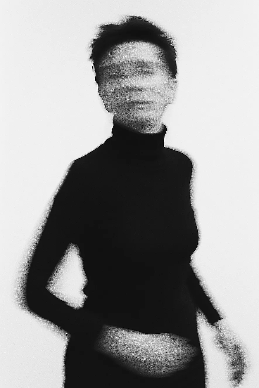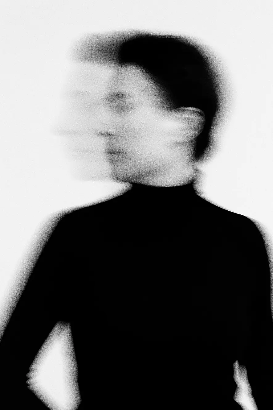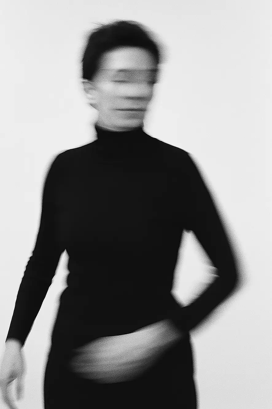 Eine erst einmal klassische Wahrnehmungsposition von Erkennung – frontal, zentriert, anonymisiert. Nicht „ich“, nicht „du“. Was bleibt, wenn das Gesicht verschwimmt, den Blick verweigert, nicht lesbar ist, das Erfassen für die Beobachterin und den Beobachter ins Leere läuft? Es entsteht eine Präsenz ohne Zugriff. Identität wird nicht angeboten, sondern bewusst uneindeutig gehalten. Ein Moment des Entziehens: sichtbar, aber eben nicht identifizierbar.