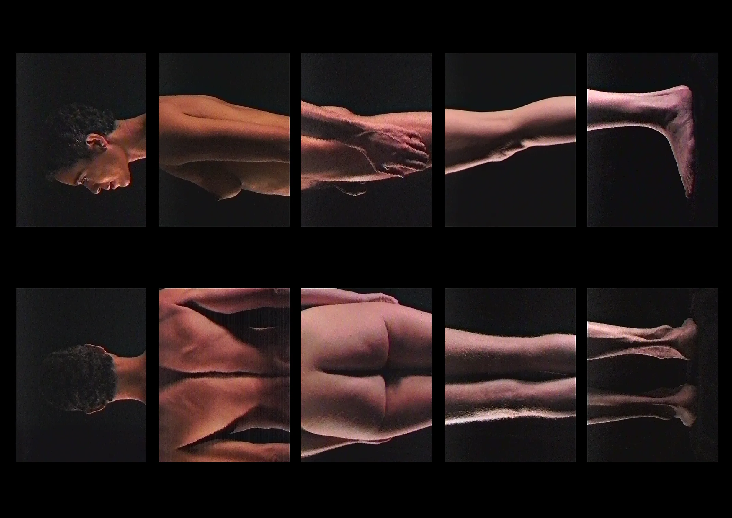 A fragmented body, composed of different genders and identities, rotates on five monitors. All parts move in the same rhythm, while their composition constantly changes. The result is a hybrid body without a fixed affiliation—an image of permanent transformation and fluid identity.